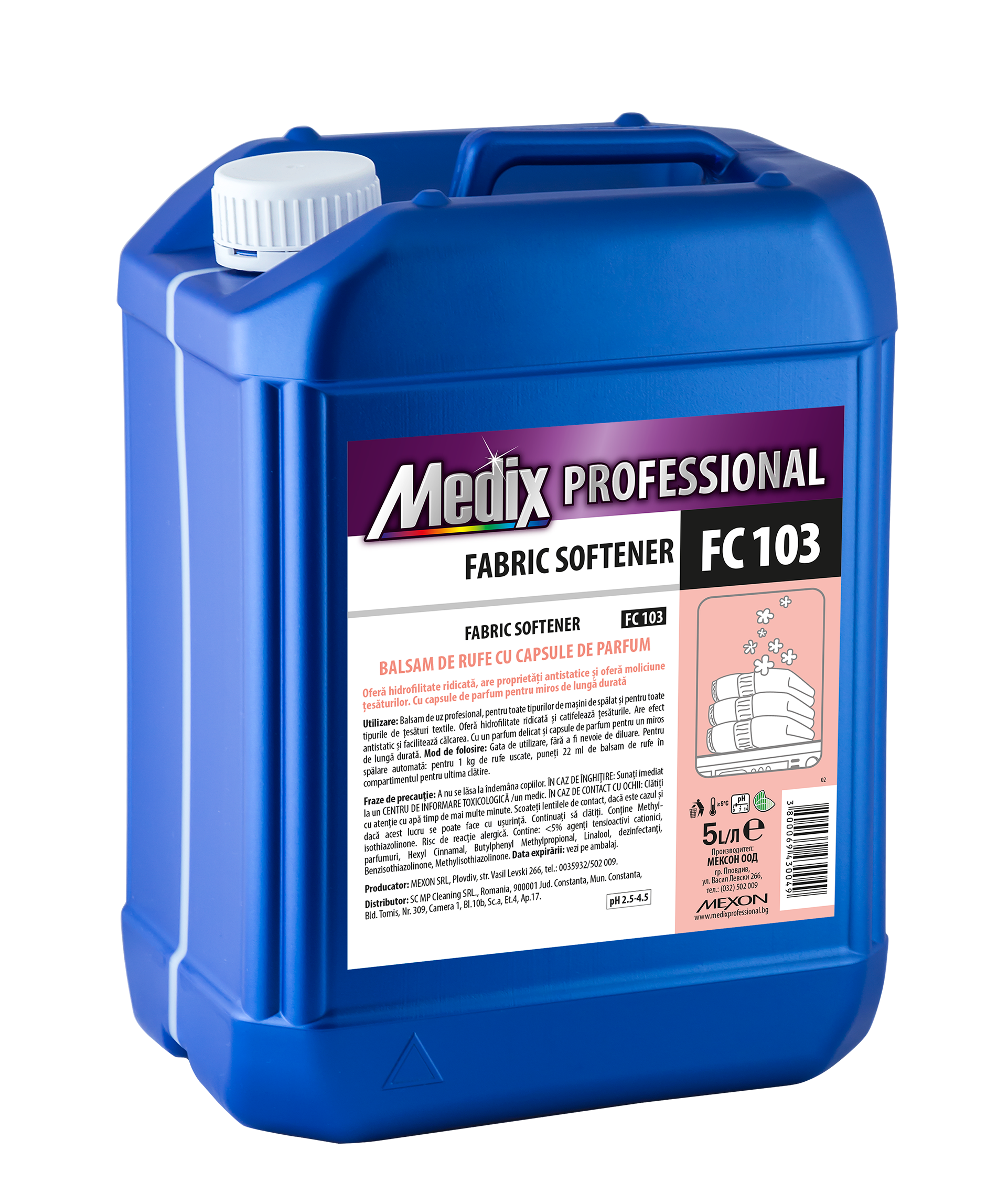 Medix Professional FC 103 este un balsam de rufe profesional cu capsule parfumate de ultimă generație, ideal pentru uz intens în hoteluri, clinici, spălătorii industriale și gospodării exigente. Lasă hainele moi, ușor de călcat și învăluite într-un parfum proaspăt, persistent.